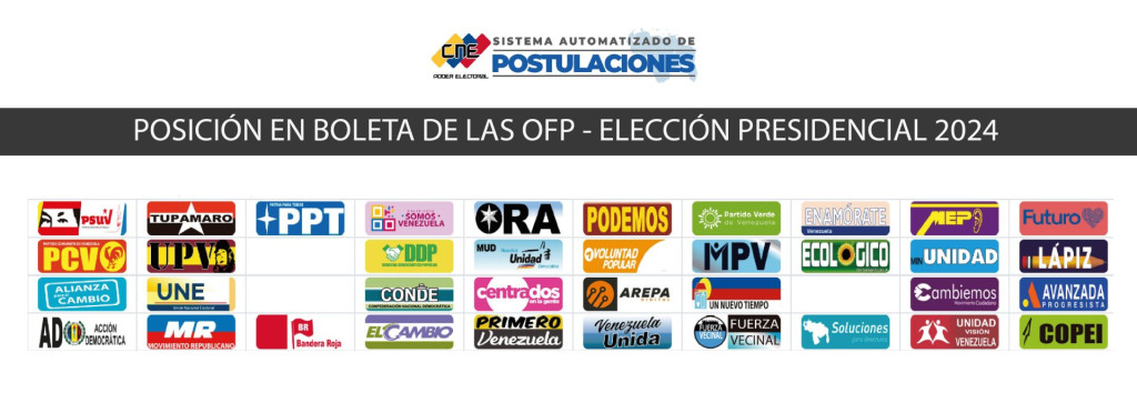 El Consejo Nacional Electoral (CNE), reveló el tarjetón electoral para las elecciones presidenciales del próximo 28 de julio, durante el acto de escogencia de la posición en la boleta celebrado en las instalaciones del Poder Electoral.