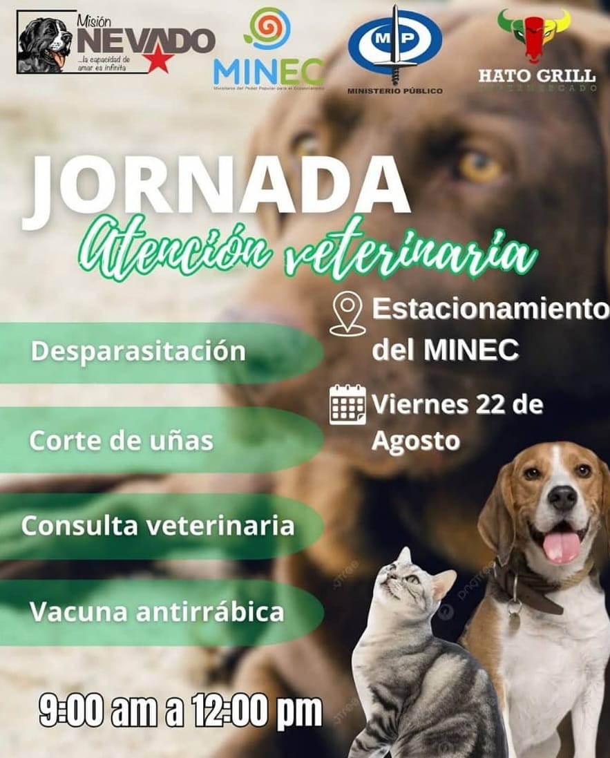 La Misión Nevado Sucre anunció que realizará una jornada de atención veterinaria para mascotas el próximo viernes 22 de agosto en la ciudad de Cumaná.
