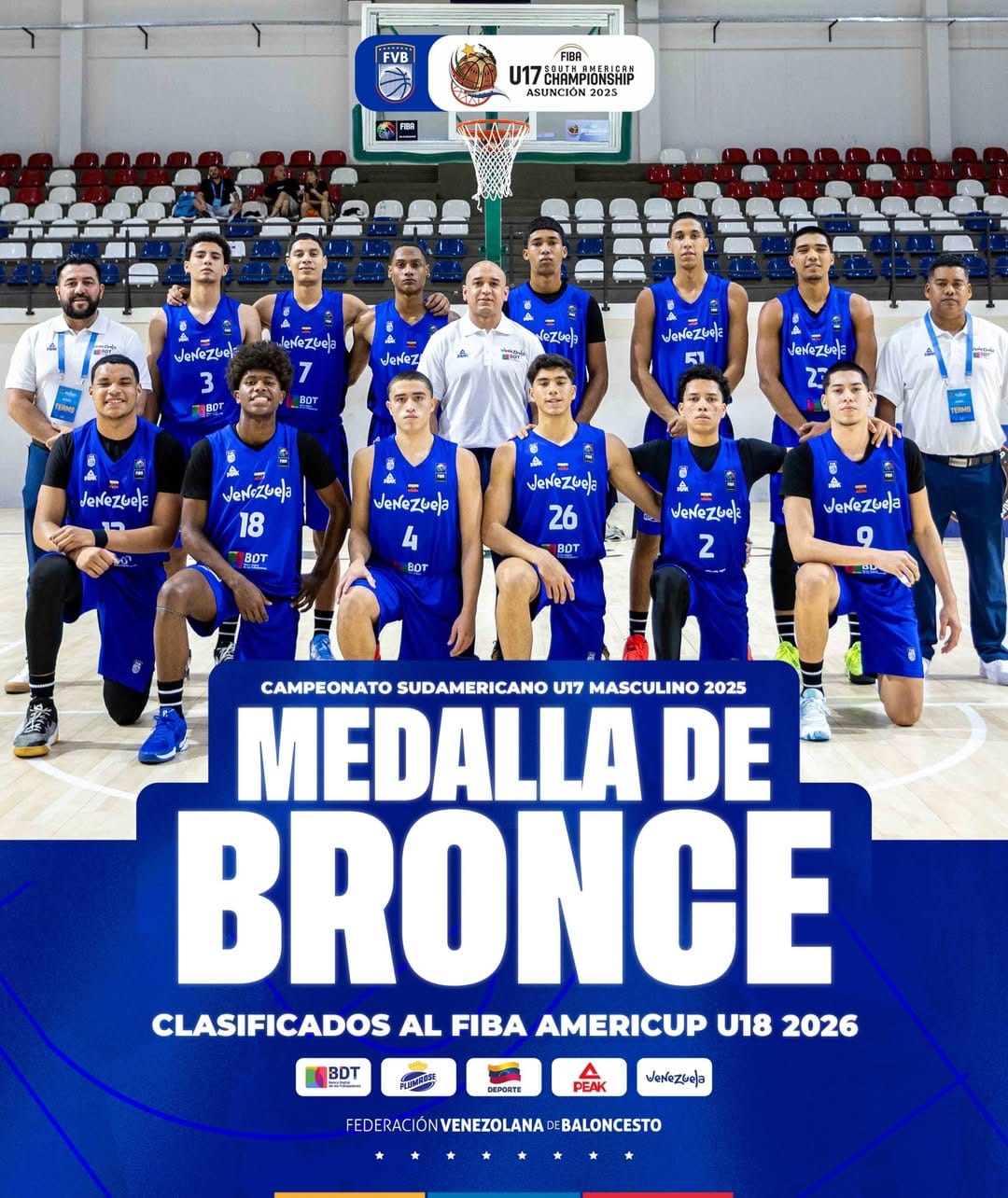 La selección U18 de baloncesto masculino aseguró su boleto a la FIBA Americup de la categoría, luego de culminar en el tercer lugar del Campeonato Sudamericano FIBA Sub-17 realizado en La Asunción, Paraguay.