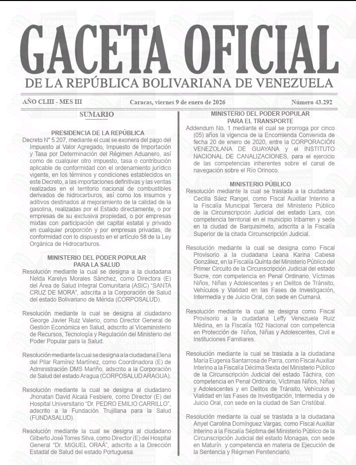 Las importaciones definitivas y las ventas de combustibles derivados de hidrocarburos realizados en Venezuela serán exoneradas del pago de impuestos, según el decreto 5.207 de la Gaceta Oficial N° 43.292.