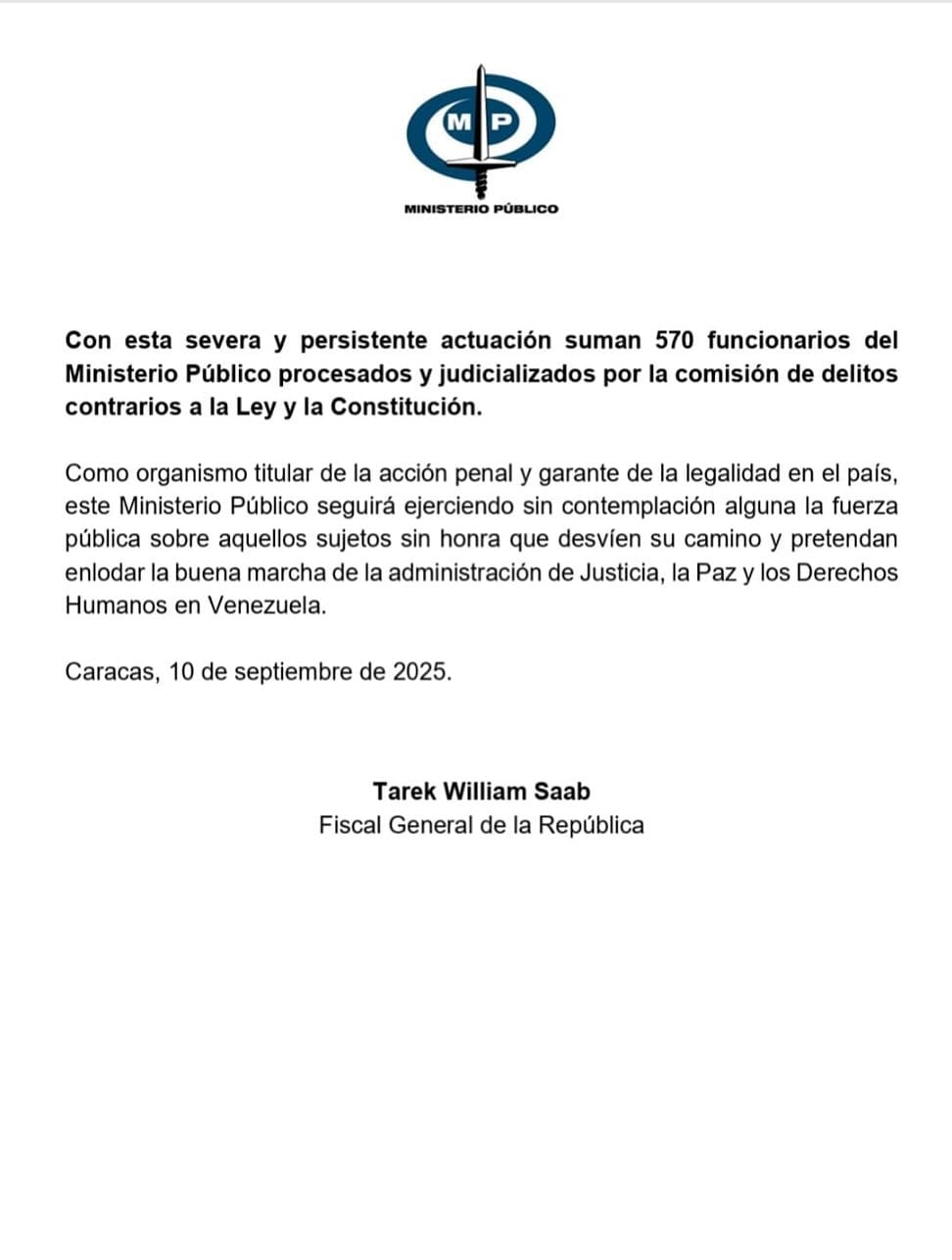 Finalmente, Saab aseguró que este tipo de medidas buscan reafirmar el compromiso institucional con la transparencia y la legalidad. «Nuestro objetivo es garantizar que todos los funcionarios actúen con decoro y responsabilidad», puntualizó.