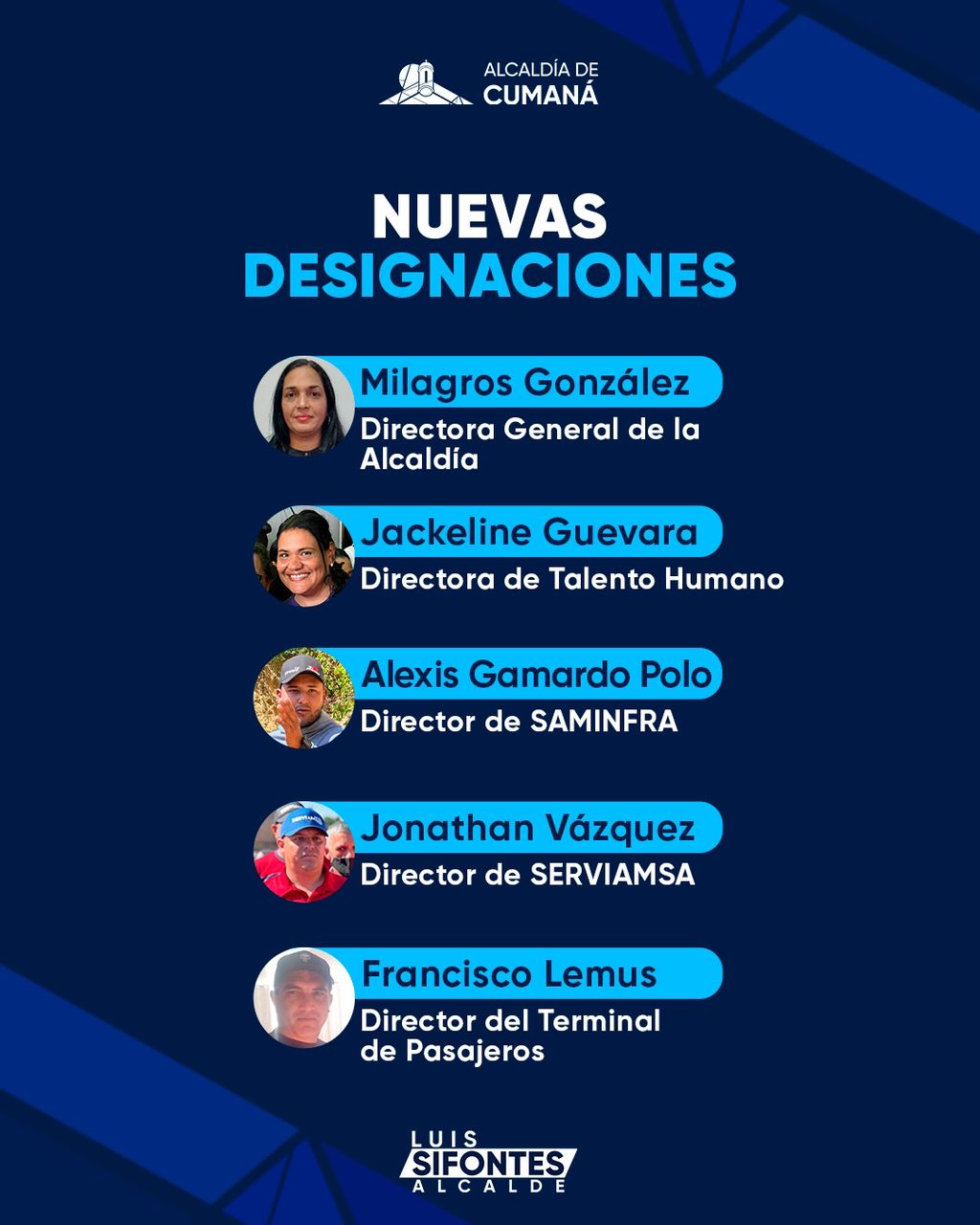 Durante la mañana de este lunes, el alcalde de Cumaná, Luis Sifontes, anunció que se llevaron a cabo nuevas designaciones en su gabinete de gobierno.