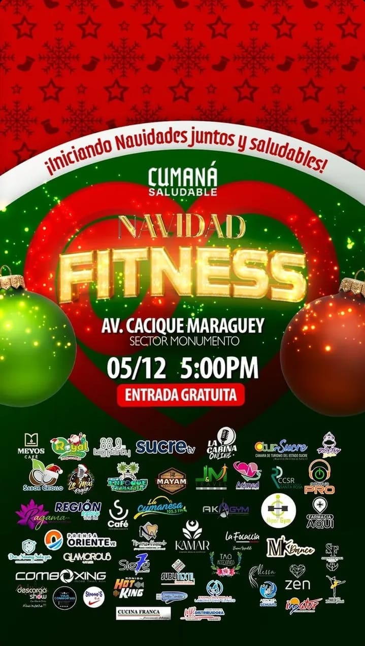 El evento deportivo y cultural «Navidad Fitness» se llevará a cabo en la avenida Cacique Maragüey, sector El Monumento de Cumaná, estado Sucre, el próximo 05 de diciembre.