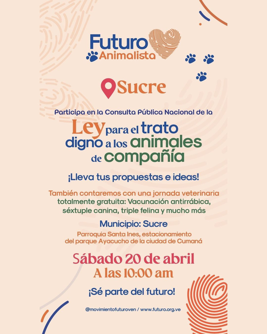 El sábado, 20 de abril, se llevará a cabo en Cumaná, estado Sucre, la Consulta Pública sobre el Proyecto de Ley para el trato digno de los animales de compañía, la cual fue aprobada en primera discusión en el mes de febrero.
