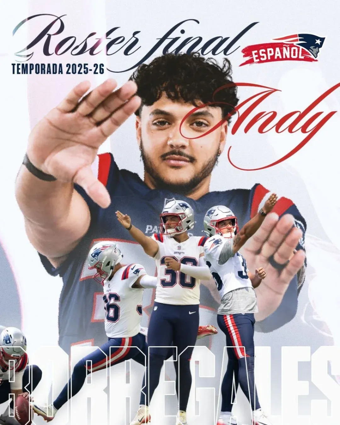 El venezolano Andy Borregales jugará la temporada 2025-2026 de la National Football League (NFL) de Estados Unidos, junto a los New England Patriots, convirtiéndose en el cuarto criollo en participar en el torneo.